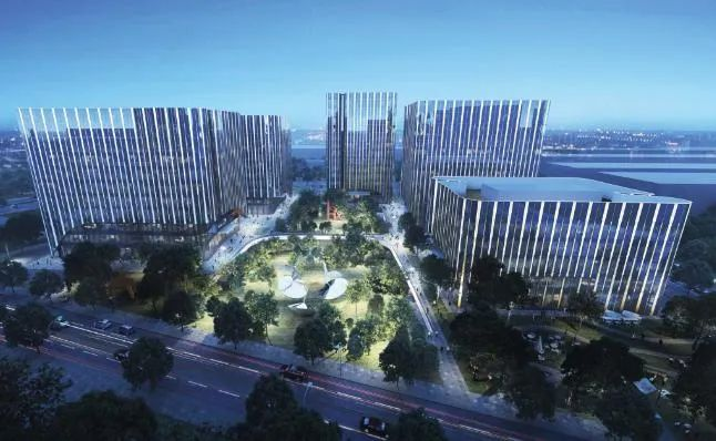 科技園項目一期總建筑面積約22.5萬平方米,包含6棟研發樓和2層地下車庫(地下共3層,一二期地下相互聯通),還設有下沉廣場和商鋪,敞亮的下沉廣場將所有建筑連在了一起。T6樓設置了戶外屋頂花園,特別鋪設